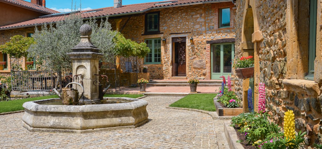 Corps de ferme typique des Monts du Lyonnais dont la première pierre a été posée en 1785. Environnement très calme, à deux pas d’un étang, paysage vallonné… Départ de randonnées… Animaux de la ferme. Cour intérieure aménagée. Notre gîte propose également des espaces calmes et tranquilles pour pratiquer le yoga dans un environnement chaleureux. Le yoga s’adresse à toutes et à tous, et chaque personne est la bienvenue !